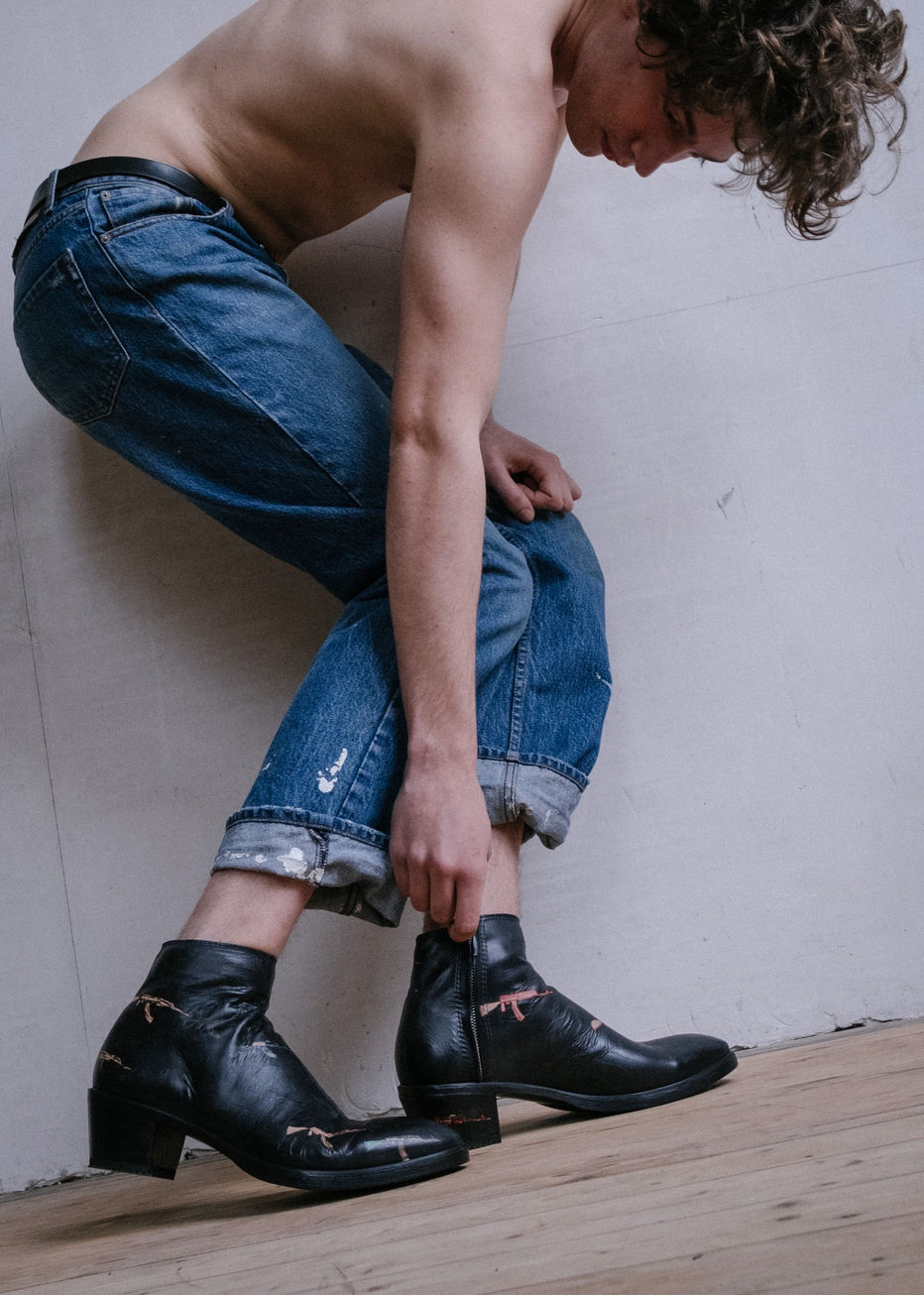 ZIPPED LEATHER HANDPAINTED AK47 BOOTS